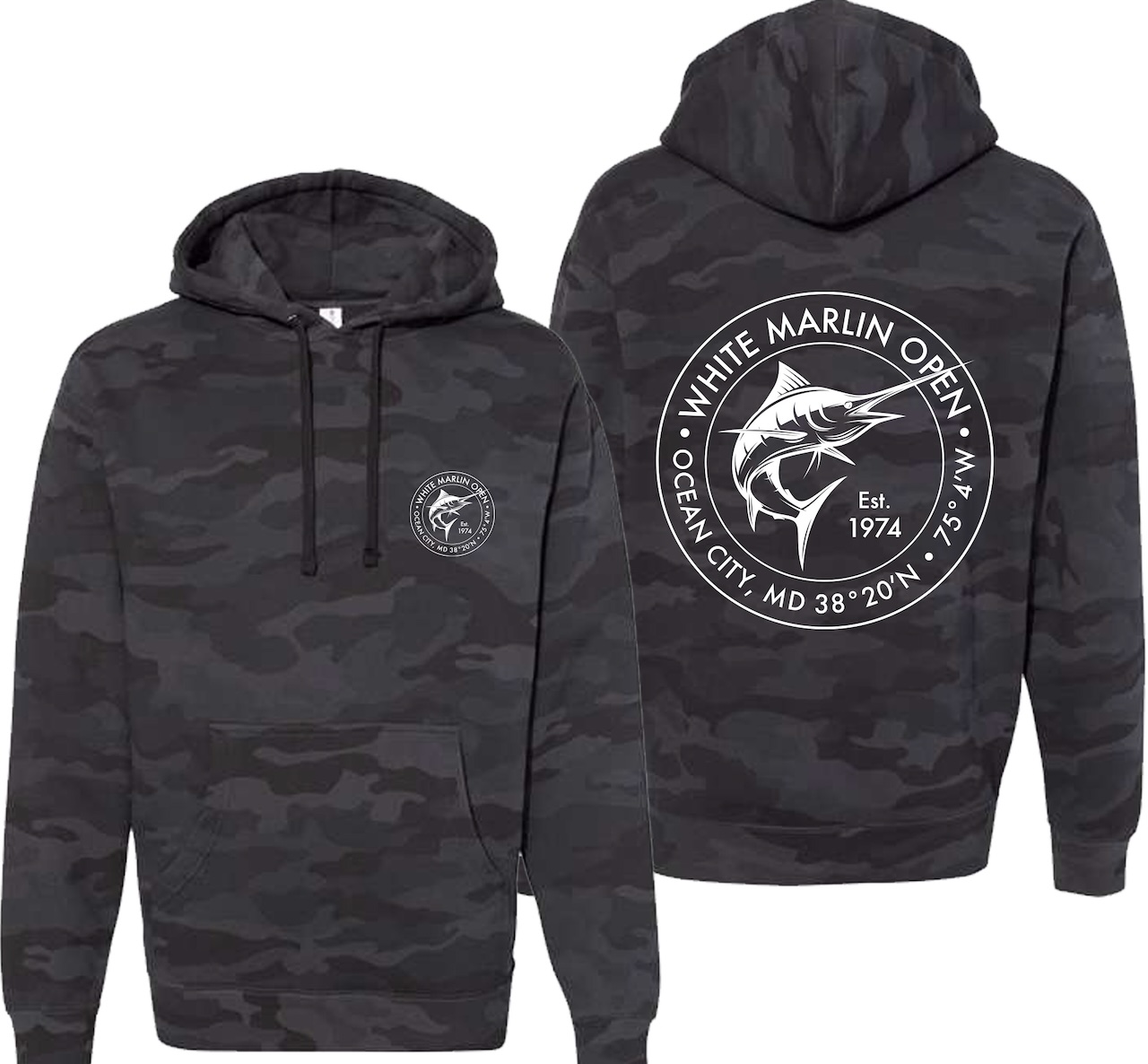 Heavyweight hoodie featuring our signature coordinates logo on the front left chest and a larger design on the back. Made for comfort and durability, perfect for cooler days on the water or everyday wear.